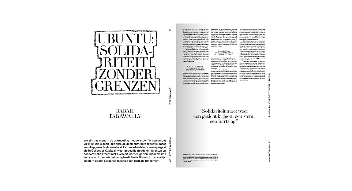 Met veel trots presenteren we Wereld Maken, onze eerste publicatie op papier! In deze essaykrant komen stemmen samen die laten zien hoe sociale verandering ontstaat. Niet als blauwdruk, maar in ontmoeting, frictie en praktijk. De teksten bieden taal en perspectief voor iedereen die zoekt naar andere manieren van werken, zorgen en samenleven. Met essays van onder anderen Michelle van Tongerloo, Mustapha Eaisaouiyen en Willem Schinkel & Rogier van Reekum. Dit vraagt natuurlijk om gevierd te worden. We heffen graag met jou het glas op deze eerste publicatie en alles wat nog komen gaat. Tot dan! *I.v.m. de Ramadan serveren wij tot zonsondergang geen eten. Na 18.50 uur is er de mogelijkheid om gezamenlijk te genieten van de hapjes.